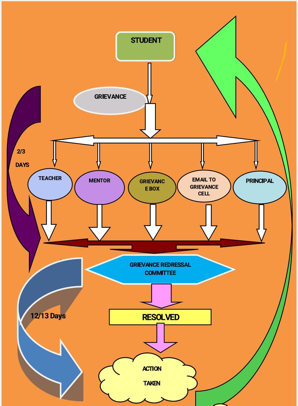 In any kind of grievance students can send grievances or suggestions and drop those in college 'Grievance Redressal Box' or can send email.